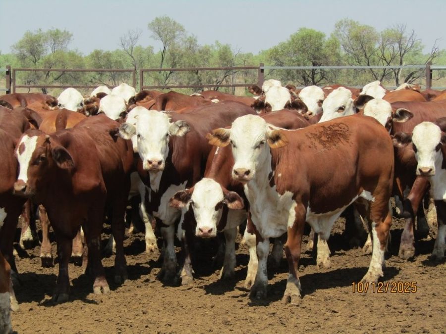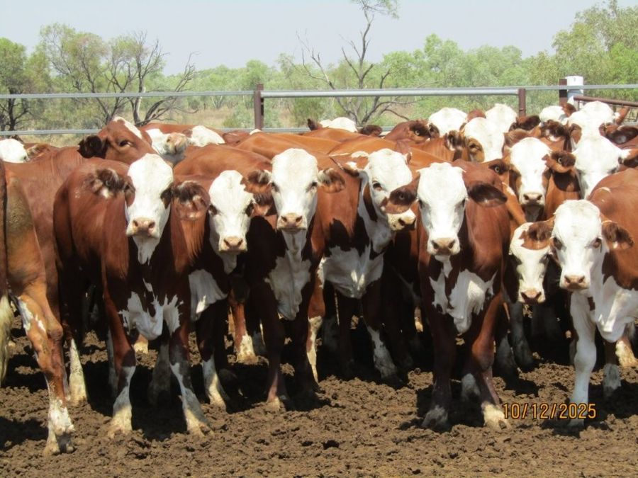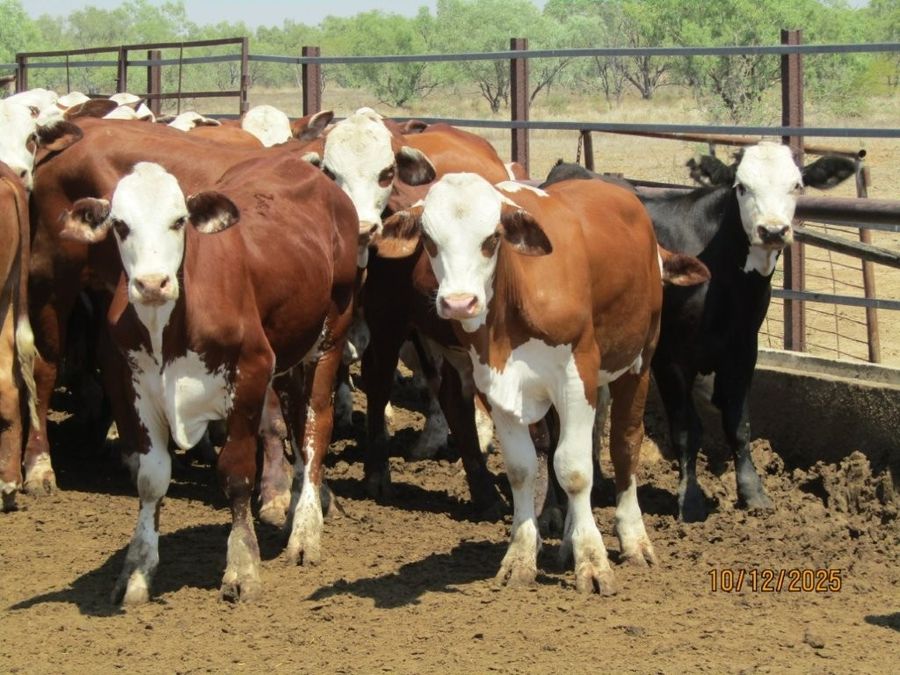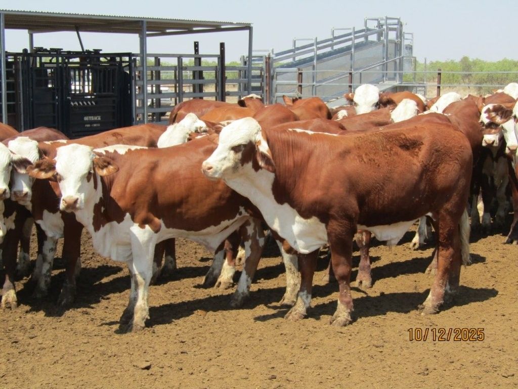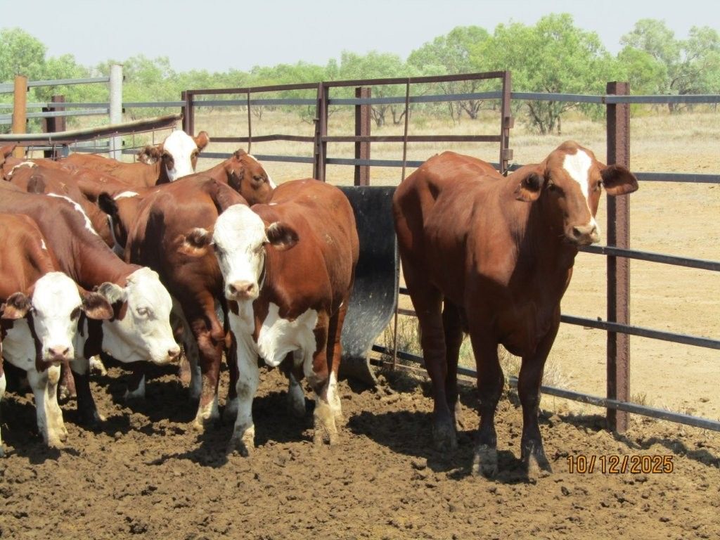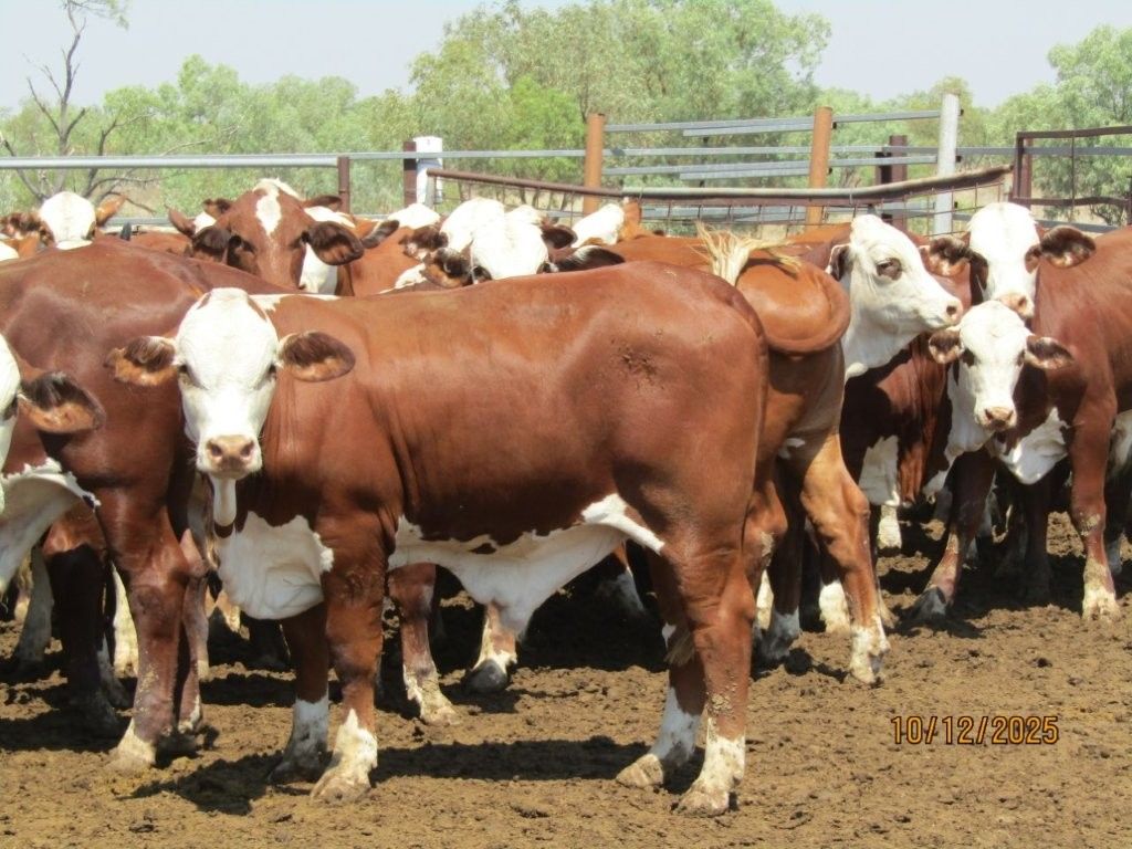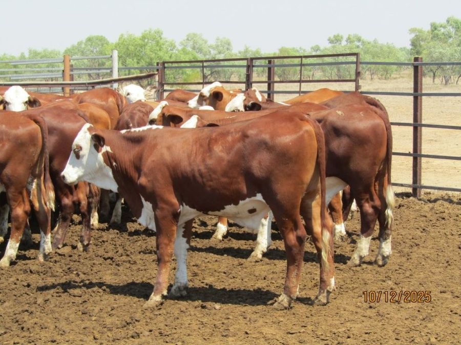 108 VGQ HGP Free Vendor Bred Braford Steers. They Exhibit Very Good Bone, Length, Depth and Frame for their age & come from a Highly Regarded Herd. Ideal Steers to grow out to Feeder weights or take through to slaughter, with the capacity to make very good Bullocks. Majority are Quiet, have Good Feet & Tidy Heads. 100% were weighed & assessed after 18 hours off feed & water. They were weaned anywhere from 3 days – 3 weeks prior to assessment & have lost all associated bloom. They have been paddock trained, getting tailed out into holding paddock during the day & yarded up at night. There is 1 x Steer that had a Ring put on at weaning 3 weeks ago. It has almost fallen off & is no concern. Vendor has 3 decks of Heifers available in the same sale. Escombe is Prickly Acacia free & Steers are Eligible for Grassfed Programs.