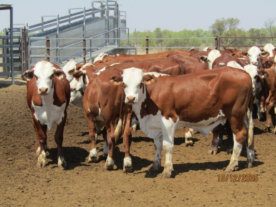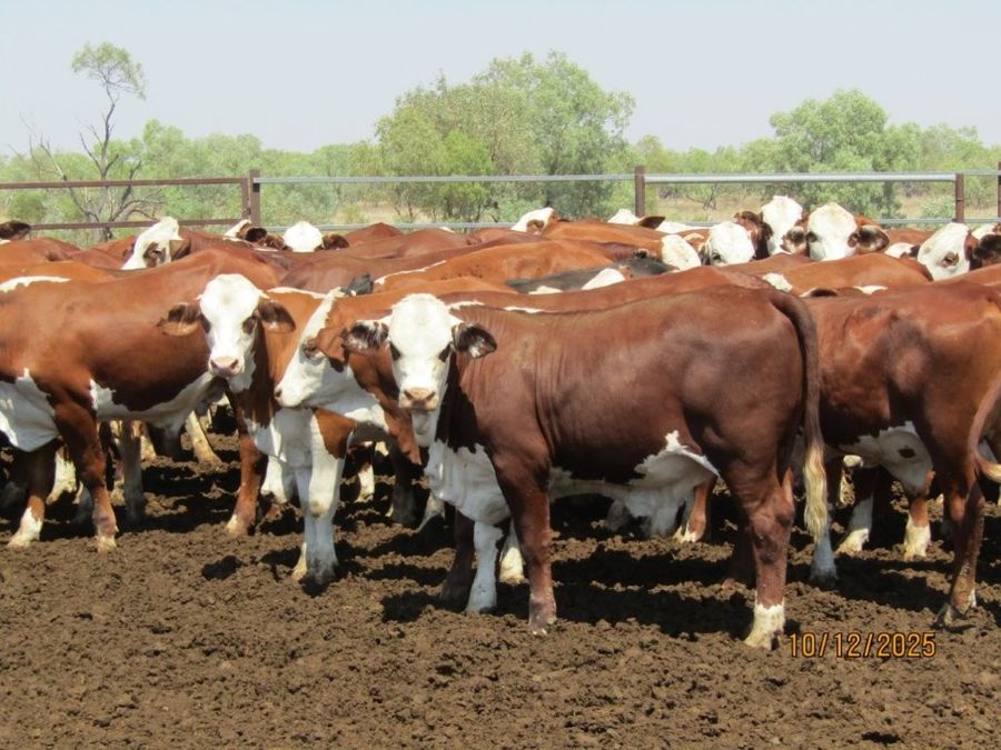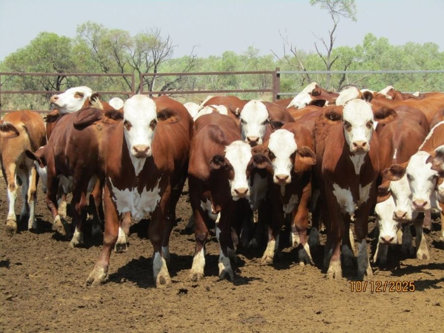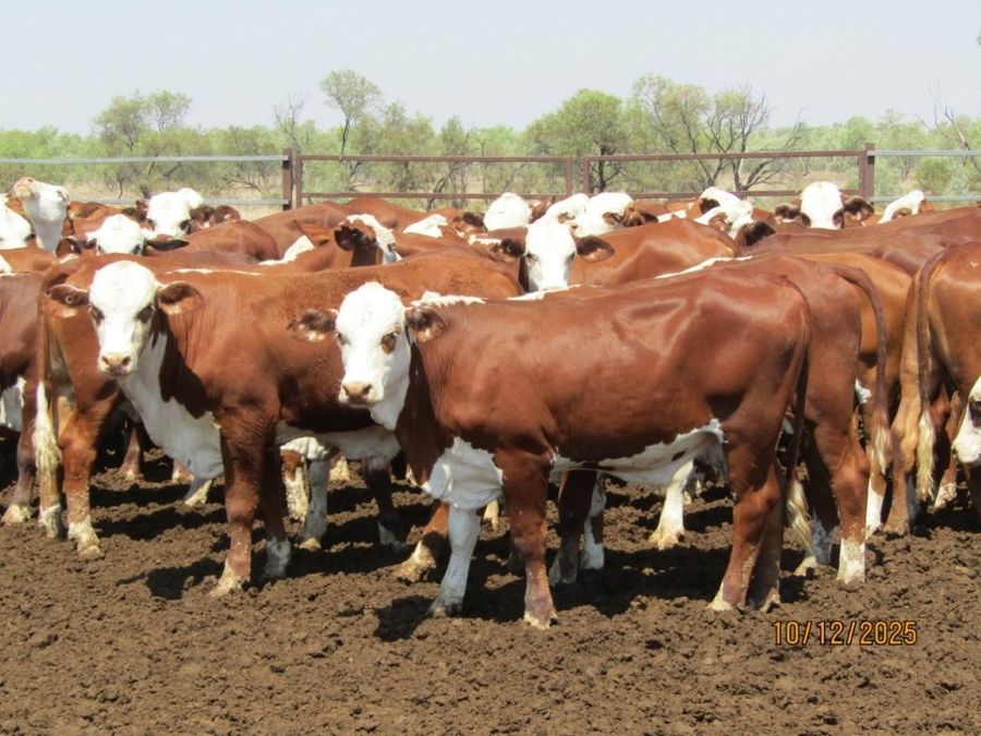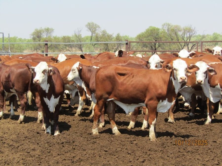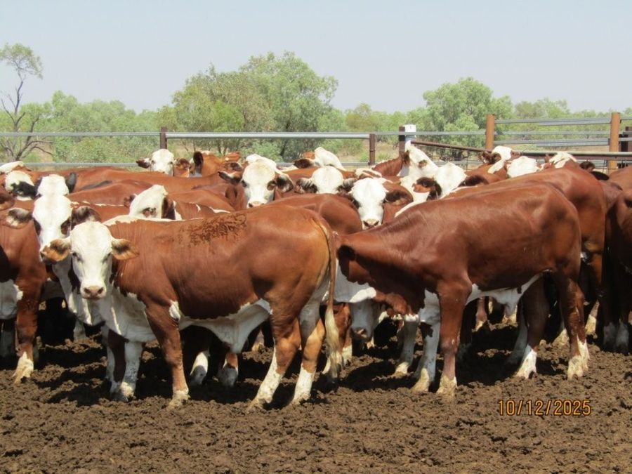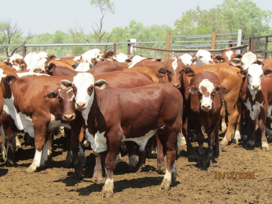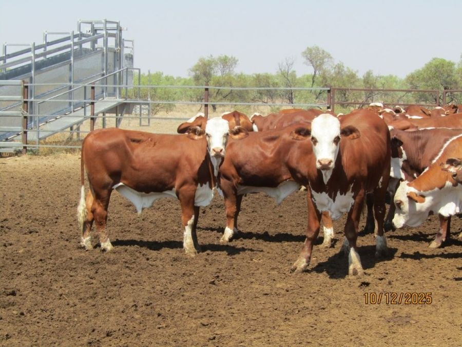 108 VGQ HGP Free Vendor Bred Braford Steers. They Exhibit Very Good Bone, Length, Depth and Frame for their age & come from a Highly Regarded Herd. Ideal Steers to grow out to Feeder weights or take through to slaughter, with the capacity to make very good Bullocks. Majority are Quiet, have Good Feet & Tidy Heads. 100% were weighed & assessed after 18 hours off feed & water. They were weaned anywhere from 3 days – 3 weeks prior to assessment & have lost all associated bloom. They have been paddock trained, getting tailed out into holding paddock during the day & yarded up at night. There is 1 x Steer that had a Ring put on at weaning 3 weeks ago. It has almost fallen off & is no concern. Vendor has 3 decks of Heifers available in the same sale. Escombe is Prickly Acacia free & Steers are Eligible for Grassfed Programs.