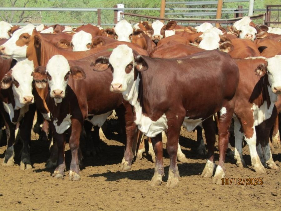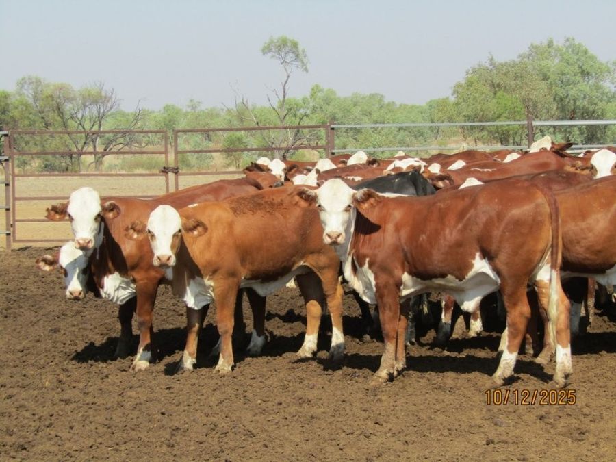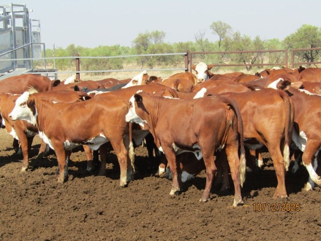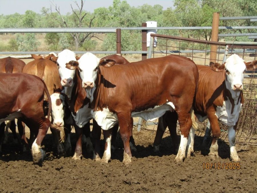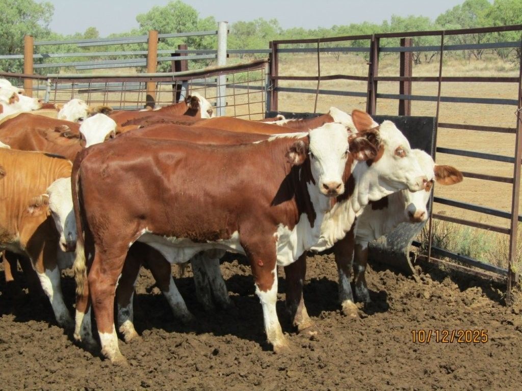 110 VGQ Vendor Bred Braford Heifers. They Exhibit Very Good Bone, Length, Depth and Frame for their age & come from a Highly Regarded Herd. Ideal Future Breeders with only 6 x pick Heifers retained & a 15% tail end removed at assessment. A rare opportunity to purchase a line of Braford Heifers of this calibre. Any Heifers not kept as Breeders will make Heavy Feeder or Slaughter weights. Majority are Quiet, have Good Feet & Tidy Heads. 100% were weighed & assessed after 18 hours off feed & water. They were weaned anywhere from 3 days – 3 weeks prior to assessment & have lost all associated bloom. They have been paddock trained, getting tailed out into holding paddock during the day & yarded up at night. Vendor has 3 decks of Steers available in the same sale. There is 1 x Heifer that is starting to get longer toes/plate footed, to be factored into bidding. Escombe is Prickly Acacia free & Heifers are Eligible for Grassfed Programs.