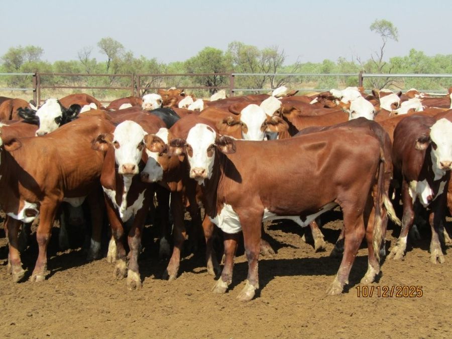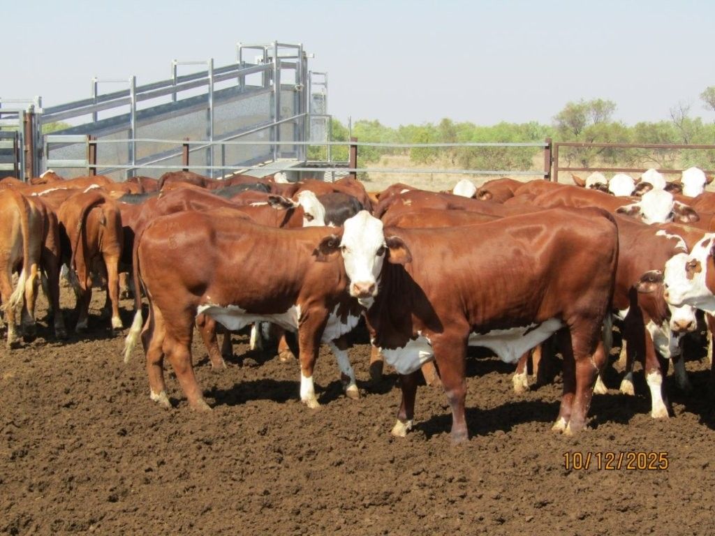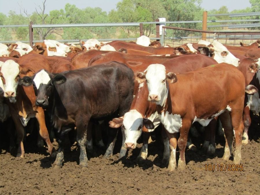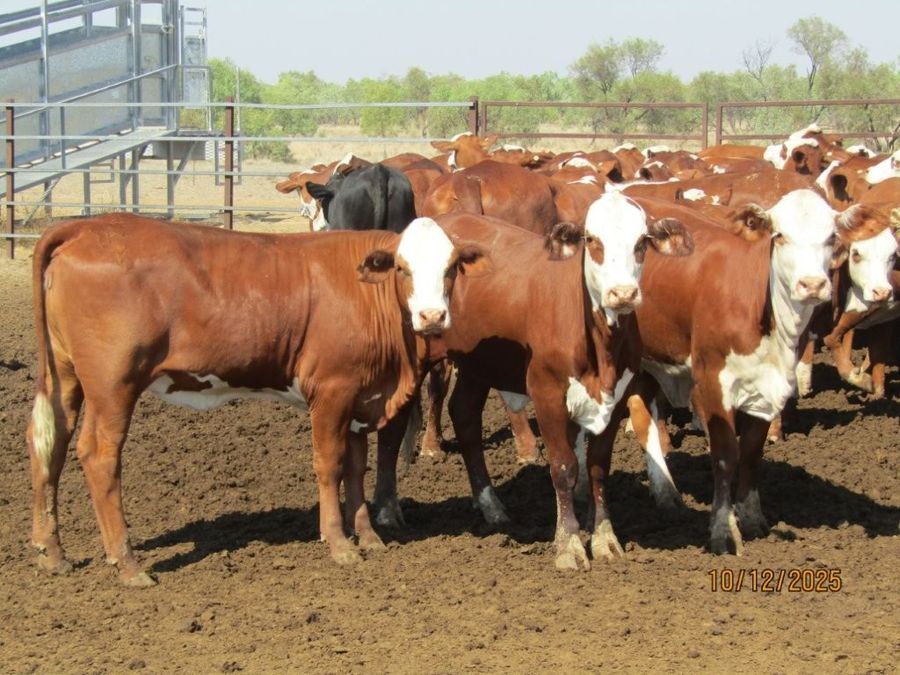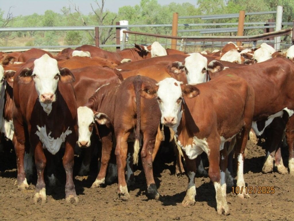 110 VGQ Vendor Bred Braford Heifers. They Exhibit Very Good Bone, Length, Depth and Frame for their age & come from a Highly Regarded Herd. Ideal Future Breeders with only 6 x pick Heifers retained & a 15% tail end removed at assessment. A rare opportunity to purchase a line of Braford Heifers of this calibre. Any Heifers not kept as Breeders will make Heavy Feeder or Slaughter weights. Majority are Quiet, have Good Feet & Tidy Heads. 100% were weighed & assessed after 18 hours off feed & water. They were weaned anywhere from 3 days – 3 weeks prior to assessment & have lost all associated bloom. They have been paddock trained, getting tailed out into holding paddock during the day & yarded up at night. Vendor has 3 decks of Steers available in the same sale. There is 1 x Heifer that is starting to get longer toes/plate footed, to be factored into bidding. Escombe is Prickly Acacia free & Heifers are Eligible for Grassfed Programs.