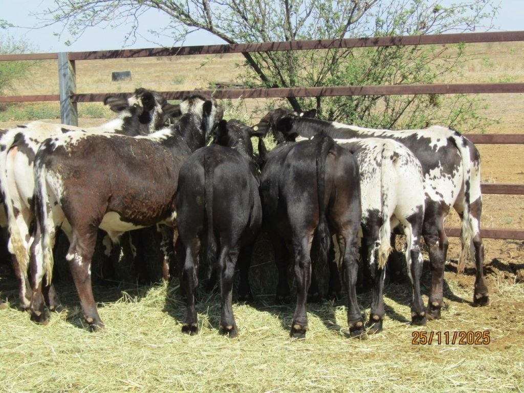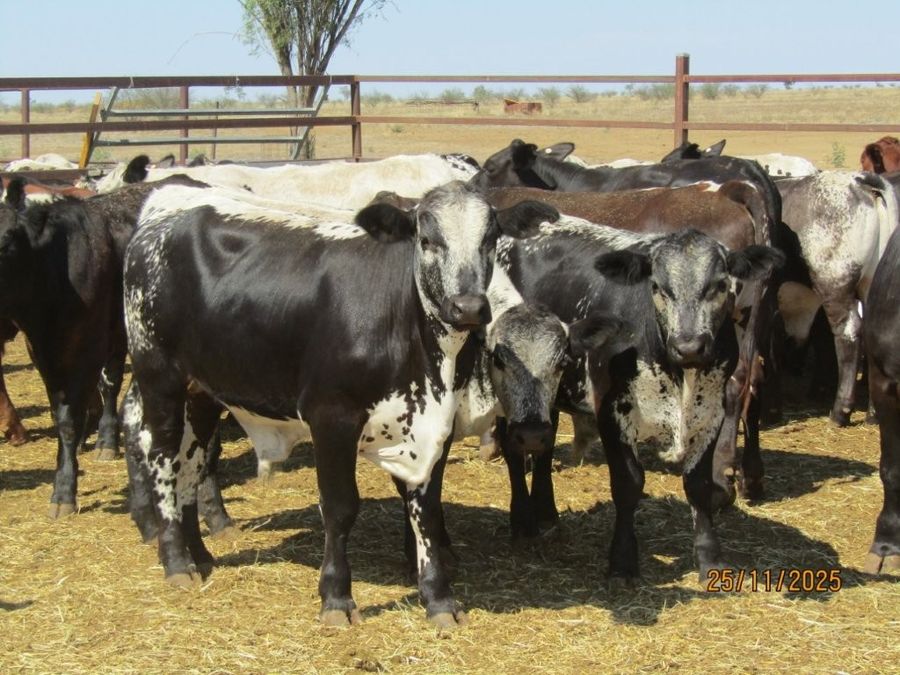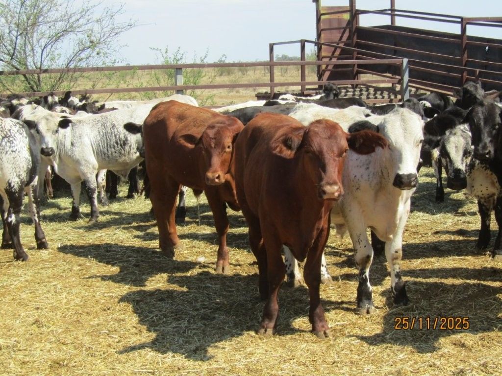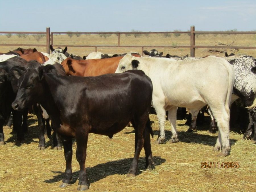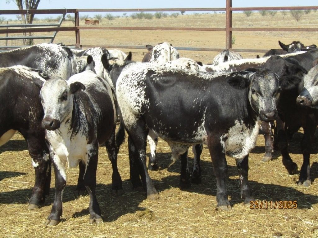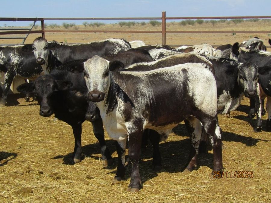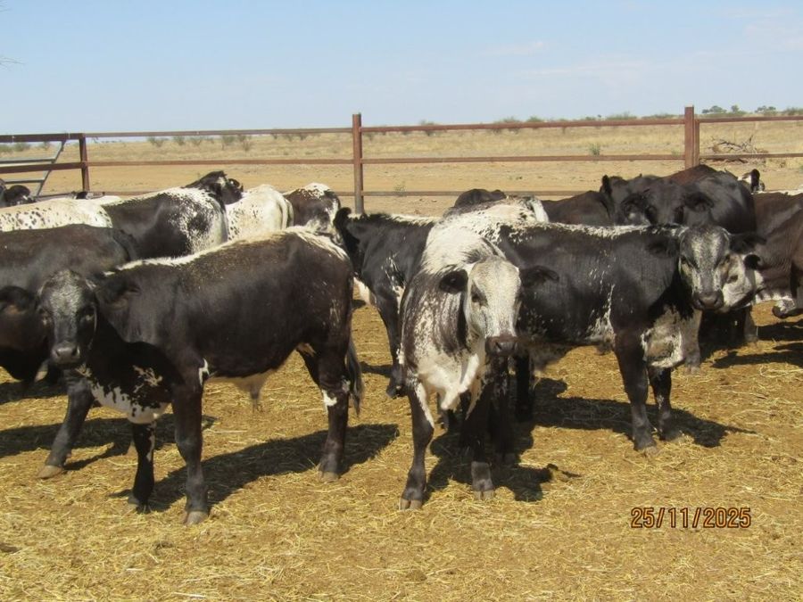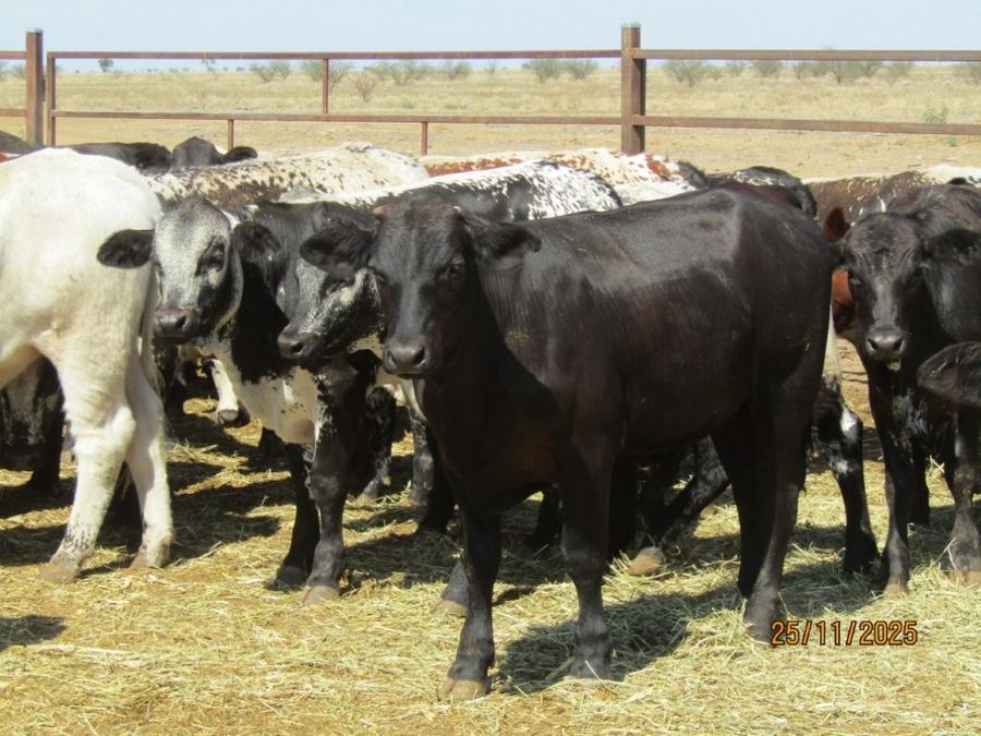 114 VGQ HGP Free Vendor Bred Speckle Cross Weaner Steers. Majority Exhibit Good Bone, Length, Depth and Frame for their age. Ideal Steers to grow out to Trade or Heavy Feeders with majority having the capacity to make Very Good Bullocks as well. They are Very Quiet, have Good Feet & come from a Highly Regarded Herd. There are 108 x Soft Crossbreds suitable for the Supermarket Trade & 6 x Flatbacks. There was 1 Steer observed with old blue eye scarring in near side eye at assessment. Kiriwina is Prickly Acacia Free, Steers are PCAS Eligible & 100% were weighed & assessed. Vendor also has another 4 decks of Weaner Heifers & 5 decks of Feeder Heifers in the same sale.