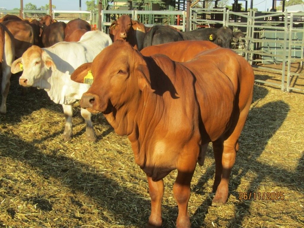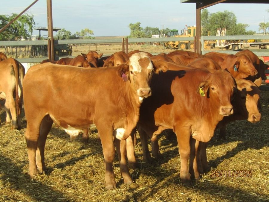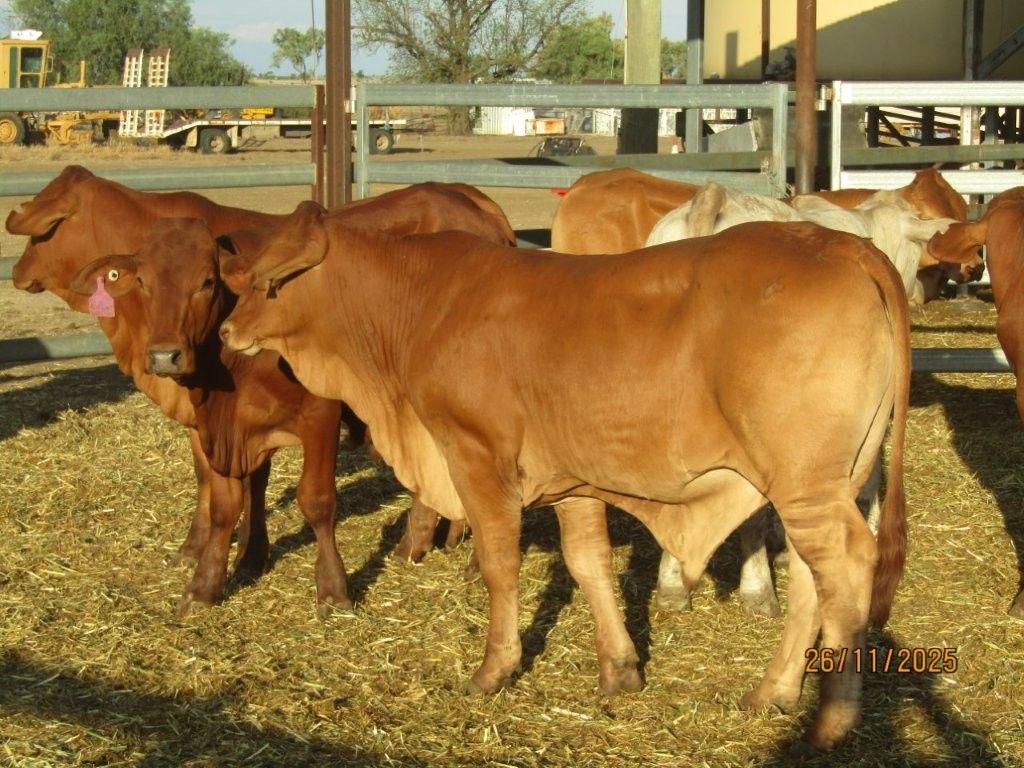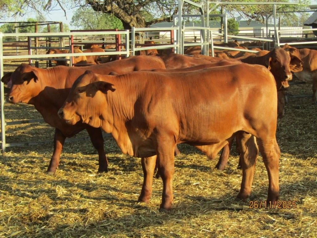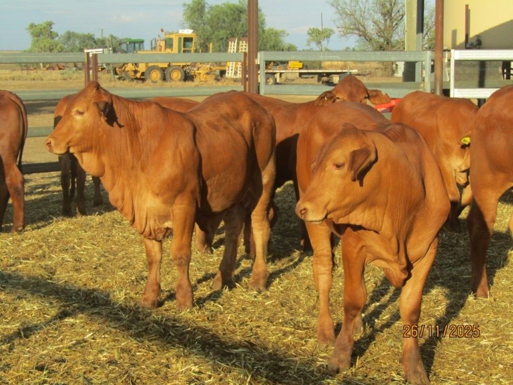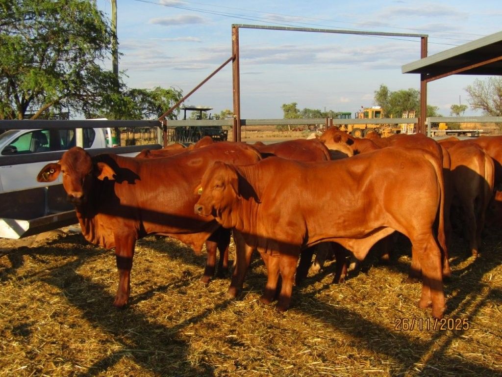 120 VGQ HGP Free Droughtmaster Steers. Majority Exhibit Very Good Bone, Length, Depth and Frame for their age. Ideal Steers to grow out to Feeder weights with majority having the capacity to make Very Good Bullocks. They are Quiet, have Good Feet, Tidy Heads & are out of the Highly Regarded “Rondel” Droughtmaster Commercial Herd. There were 85% weighed & assessed on a full weight. There are approx 20 Steers to come back from agistment that will fit in with this mob. They will be offered off scales Winton after a 12 hour overnight curfew off feed & water. Vendor would appreciate a prompt pickup as Steers are being fed in the yards. Vendor has another 3 decks of Lighter Steers in the same sale. Happy to sign any Grassfed paperwork if required as they have not received any lick or antibiotics.