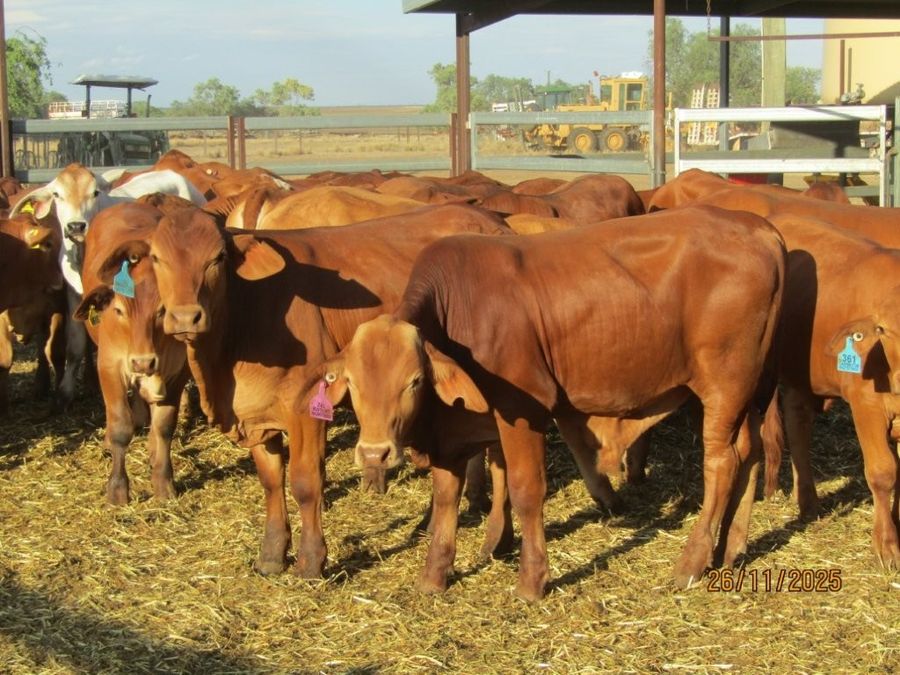 123 VGQ HGP Free Droughtmaster Steers. Majority Exhibit Very Good Bone, Length, Depth and Frame for their age. Ideal Steers to grow out to Feeder weights with majority having the capacity to make Very Good Bullocks. They are Quiet, have Good Feet, Tidy Heads & are out of the Highly Regarded “Rondel” Droughtmaster Commercial Herd. They were 100% weighed & assessed on a full weight. They will be offered off scales Winton after a 12 hour overnight curfew off feed & water. Vendor would appreciate a prompt pickup as Steers are being fed in the yards. Vendor has another 4 decks of Heavier Steers in the same sale. Happy to sign any Grassfed paperwork if required as they have not received any lick or antibiotics.