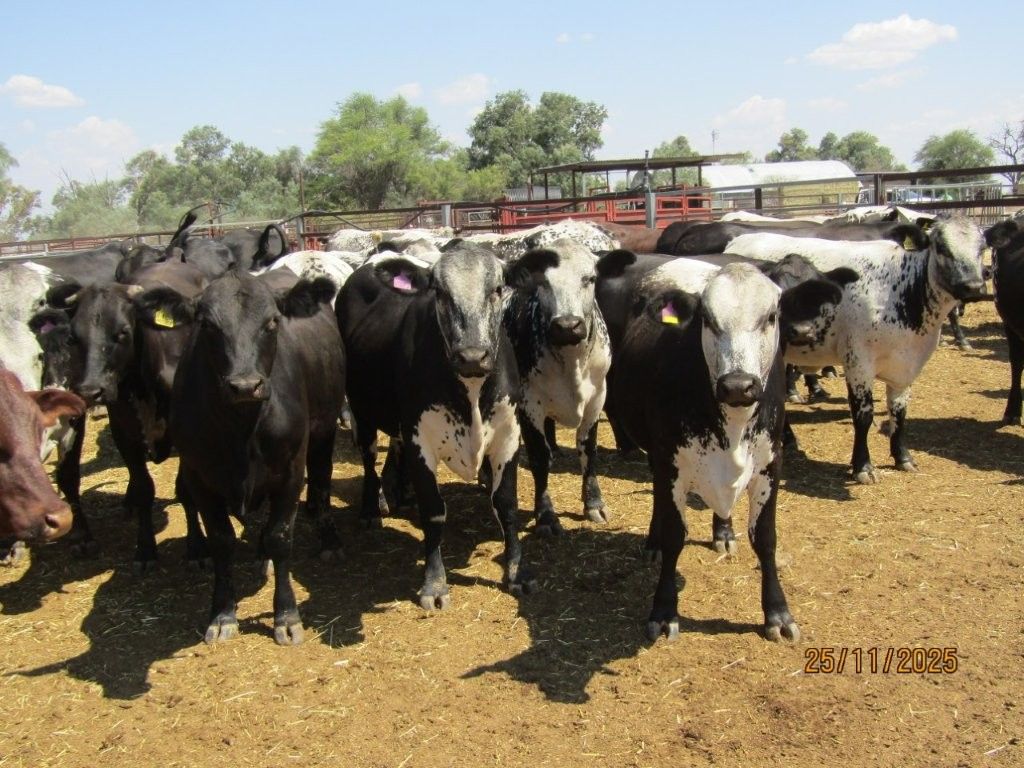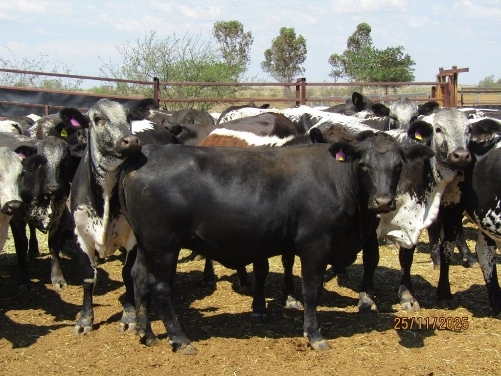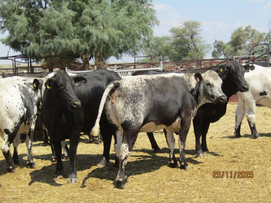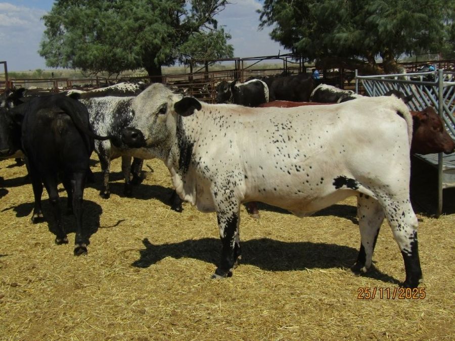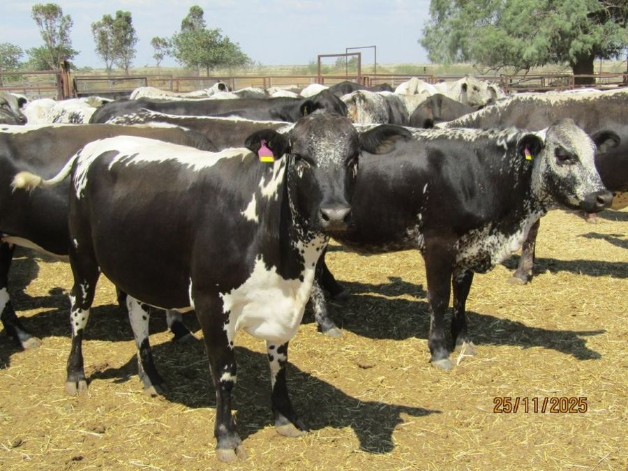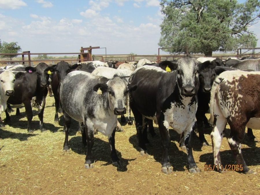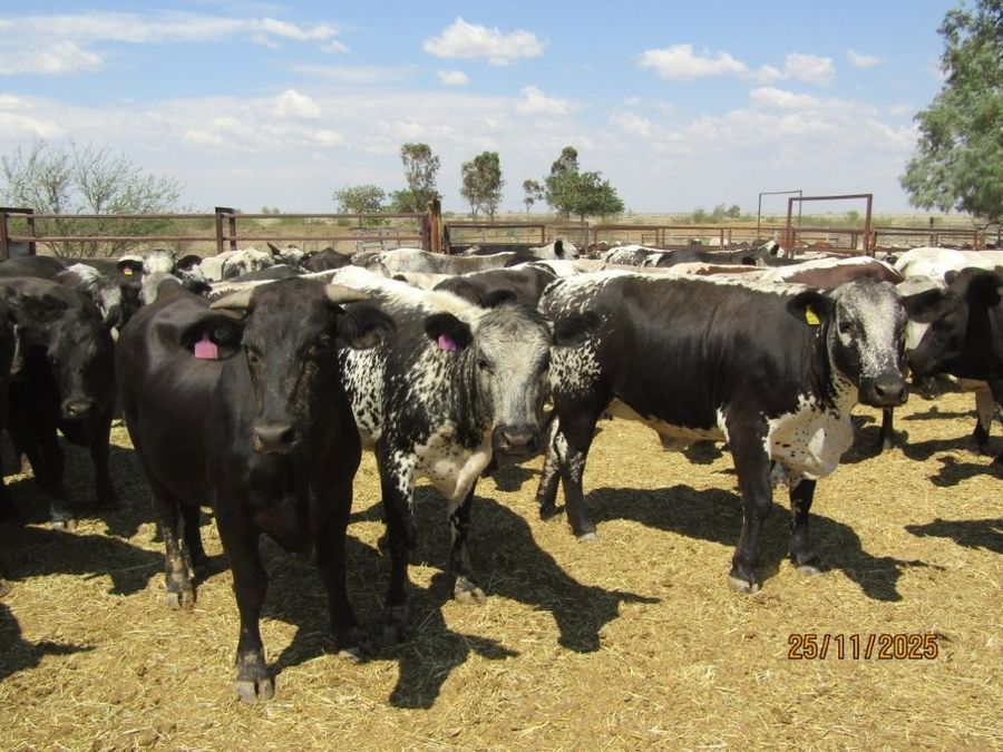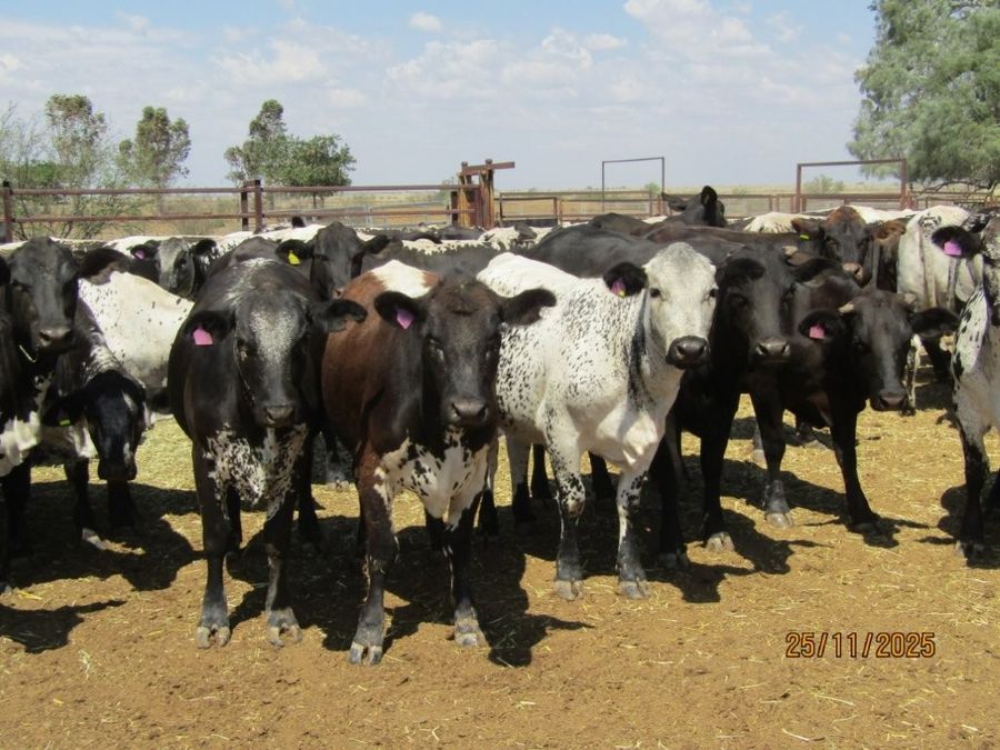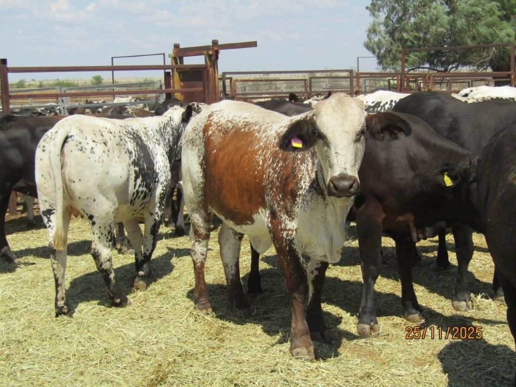 126 VGQ PTE Vendor Bred Speckle Cross Feeder Heifers. Majority Exhibit Good Bone, Length, Depth and Frame for their age. Ideal Heifers to finish on Grass, Crop or Grain for Trade or Export Slaughter Markets. They are Very Quiet, have Good Feet & come from a Highly Regarded Herd. There are 124 x Soft Crossbreds suitable for the Supermarket Trade & 2 x Flatbacks. There are 43 x Milk Teeth, 25 x Breaking 2 Teeth, 47 x 2 Teeth, 8 x Breaking 4 Teeth & 2 x 4 Tooths. Kiriwina is Prickly Acacia Free, Heifers are PCAS Eligible & 100% were weighed, mouthed, preg-tested & assessed. Vendor also has 4 decks of lighter Weaner Heifers & 3 decks of Weaner Steers in the same sale.